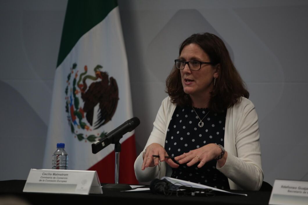 EUs handelskommissionär Cecilia Malmström passade också på att ge en svårmissad pik till USAs president vid en presskonferens efter att hon träffat Mexikos ekonomiminister Ildefonso Guajardo. Först uttryckte hon optimism om att förhandlingarna om att uppdatera det 20 år gamla handelsavtalet mellan EU och Mexiko kan avslutas innan årets slut. "Det är ett ambitiöst men möjligt mål. Vi vill skicka en tydlig signal till världen om vikten att stärka, inte försvaga, reglerna som styr internationell handel".
