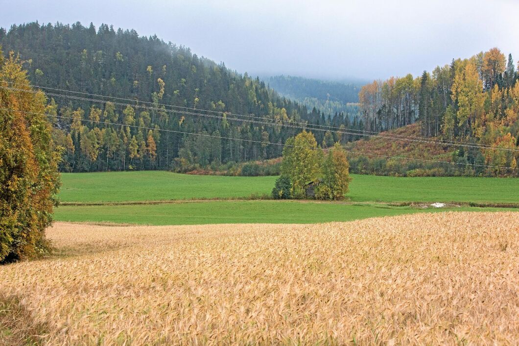 Inte heller i Edsbyn i Hälsingland ser det något vidare ut på spannmålssidan. Det är blött och stora arealer är fortfarande oskördade.