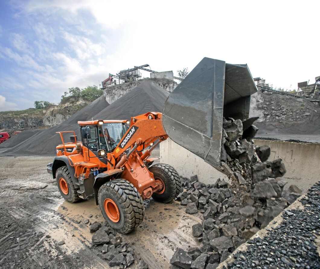 • Doosan DL420-5 CVT har en kontinuerlig variabel växellåda som kan växla mellan hydrostatisk transmisson och en automatisk växellåda beroende på motorns varvtal.