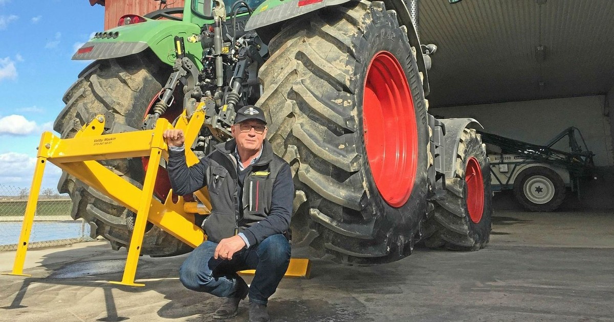 Här är uppfinningen som prisats. Anders Olsson i Vassmolösa har gjort en lösning som gör hjulbyten både säkrare och smidigare.