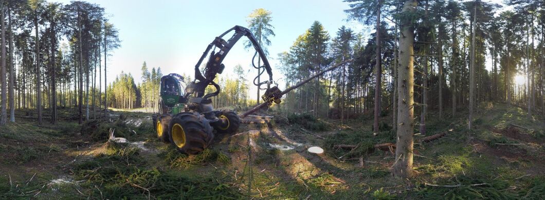 Den så kallade 360-filmen vid slutavverkningen i skogarna utanför Markaryd är inspelad men specialbyggd kamerarigg, där sex stycken kameror med vidvinkellinser monterats fast. Kamerorna filmar sedan åt alla håll samtidigt.